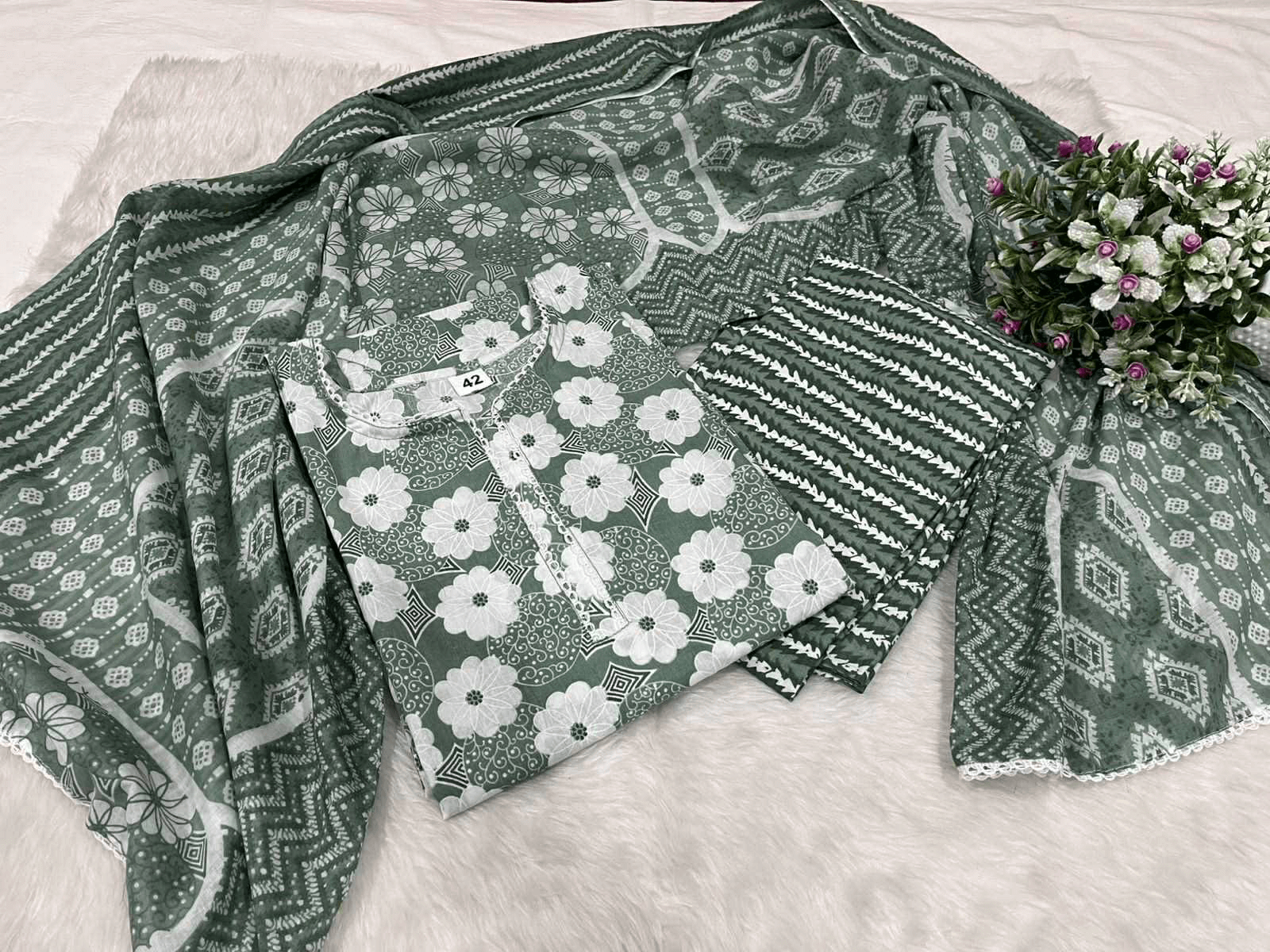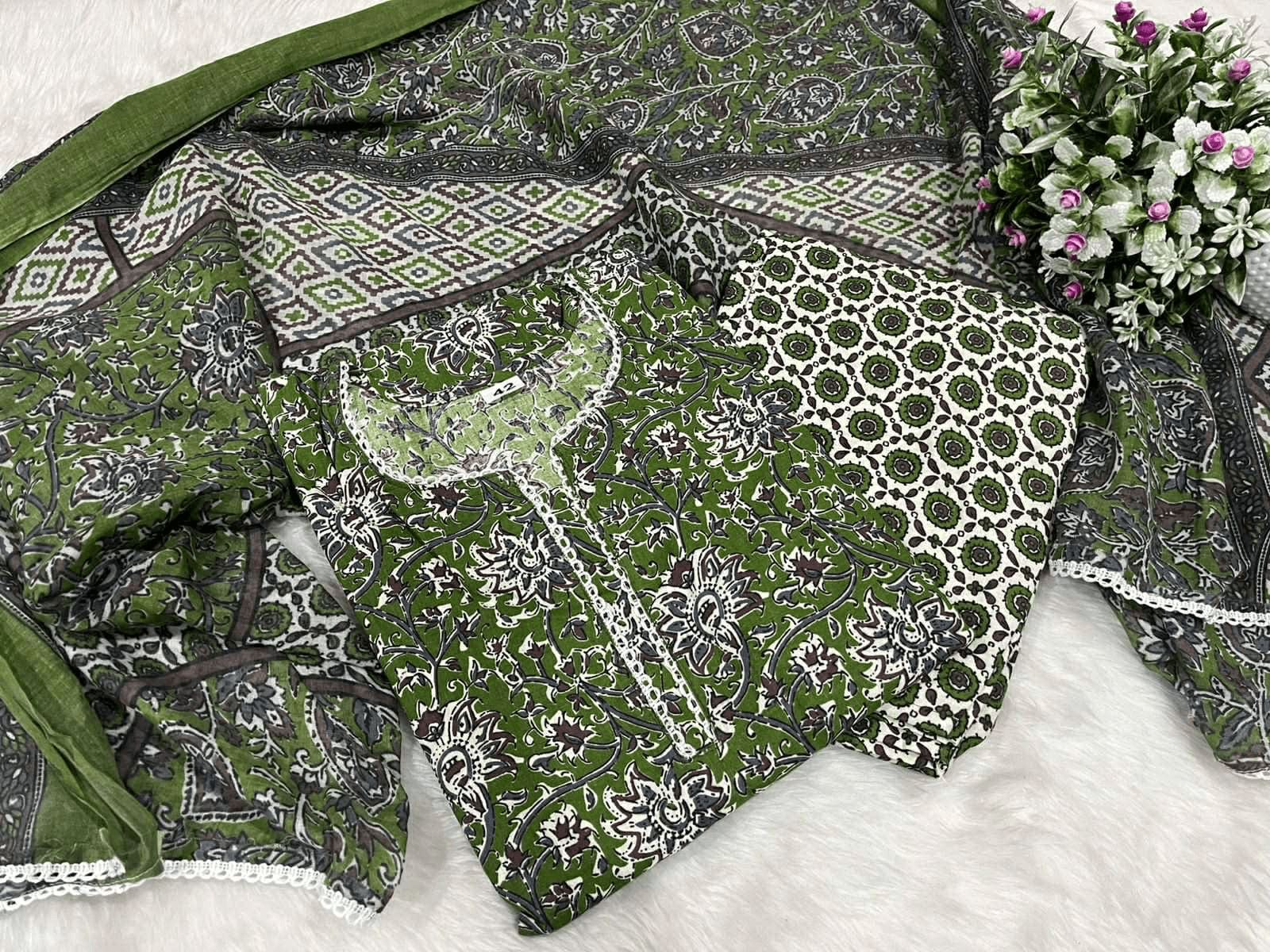 Premium Jaipuri Cotton Kurti Set with Dupatta – One Side Pocket